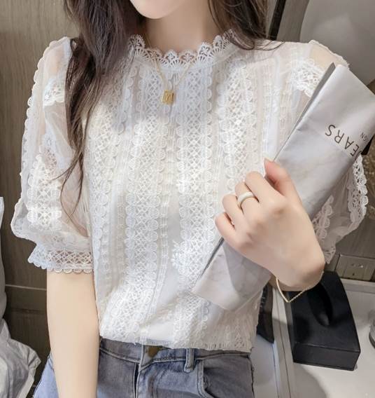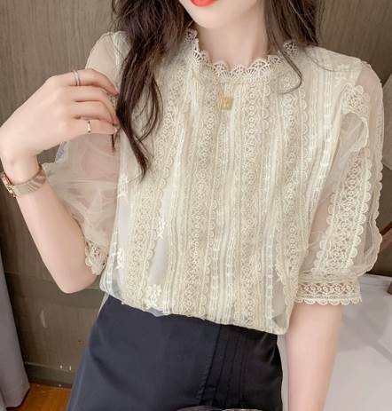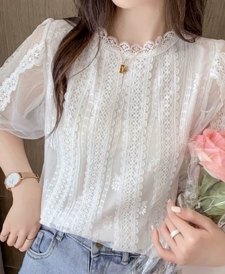 レディース トップス シャツ プルオーバー 半袖 レース袖 ハイネック レース襟 ストレート レース 刺繍 透け感 かわいい 大人可愛い きれいめ シンプル 上品 おしゃれ ガーリー エレガント ラブリー キュート クラシカル シック 高級感 無地 花柄 フラワー 夏 10代 20代 30代 OL 学生 デート お出かけ 旅行 海 レストラン 女子会 休日 ショッピング カフェ 楽ちん 体型カバー 普段使い 着回し モテ 清楚 S M L XL ゆったり 白 ホワイト アプリコット