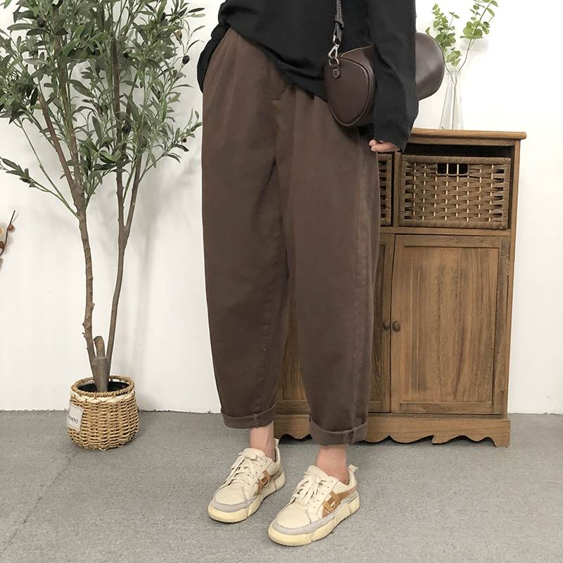 ボトムス パンツ サルエルパンツ テーパードパンツ 9分丈 ワイド 丸ポケット 伸縮性 大人可愛い きれいめ シンプル カジュアル 大人 上品 綿 お洒落 レトロ 大人女子 こなれ感 マニッシュ ガーリー 個性的 モダン 主役級 抜け感 無地 春 夏 秋 20代 30代 40代 ママ 通勤 学生 通学 デート お出かけ 女子会 休日 旅行 着回し 普段使い 重ね着 楽ちん 体系カバー 定番 トレンド 流行 インスタ映え L XL ゆったり ブラウン ブラック アースカラー