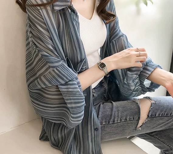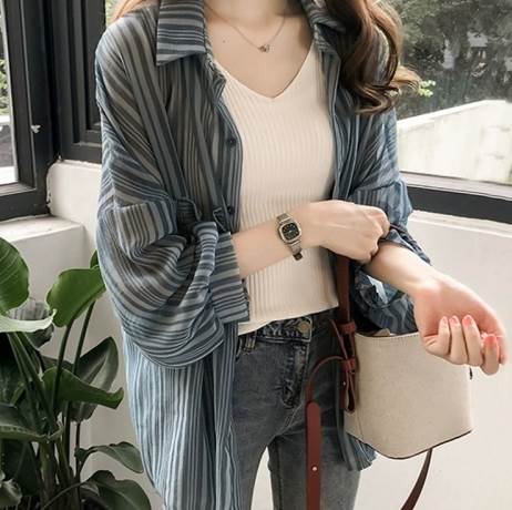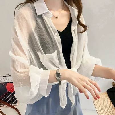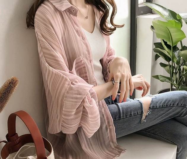 透け感のある生地で涼しげな印象を与え、オールシーズン使えます