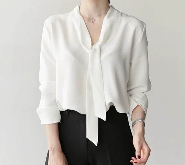 トップス シフォン ブラウス プルオーバー 長袖 襟なし スカーフ付き かわいい きれいめ シンプル 大人 上品 おしゃれ かっこいい レトロ こなれ感 クール フォーマル 主役級 存在感 無 個性的