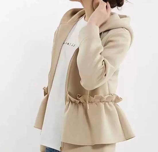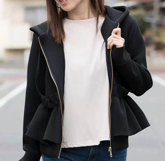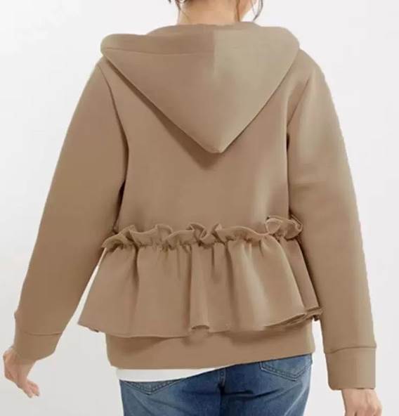 アウター パーカー ショート丈 袖付き 長袖 襟なし フード付き 前開き ファスナー フリル 厚手 かわいい 大人可愛い きれいめ シンプル 大人 上品 おしゃれ 大人女子 レトロ こなれ かっこいい