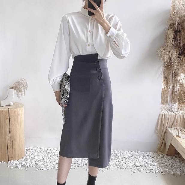 レディース スカート ラップスカート 膝丈 ストレート アシンメトリー スリット サイドボタン ハイウエスト かわいい 大人可愛い きれいめ シンプル カジュアル 上品 おしゃれ クール 無地 春 夏 秋 冬 オールシーズン デート お出かけ コーデ 美脚 脚長 モテ トレンド S M L 白 ホワイト 黒 ブラック グレー カーキ