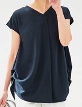 トップス ブラウス カットソー 袖あり フレンチスリーブ Vネック プリーツ バックシャン バックコンシャス バックプリーツ フロントタック サイドタック エレガント フォーマル 春 夏 誕 とろみ感