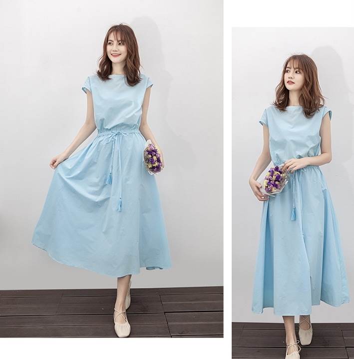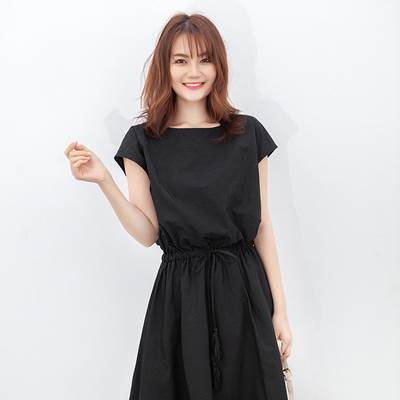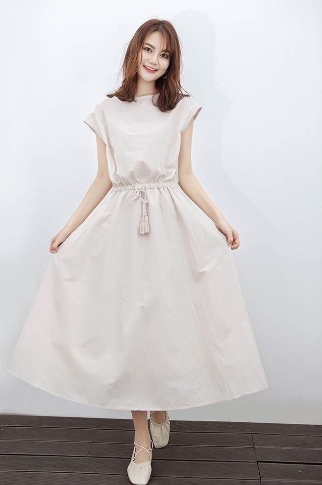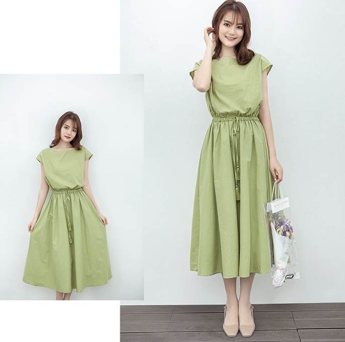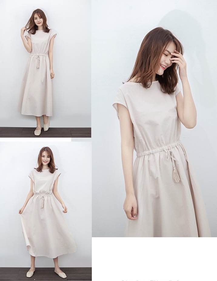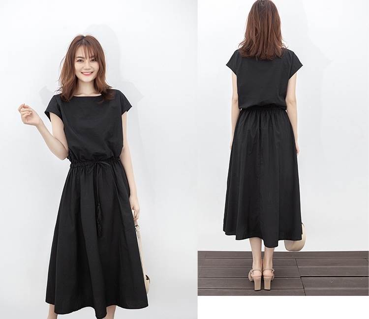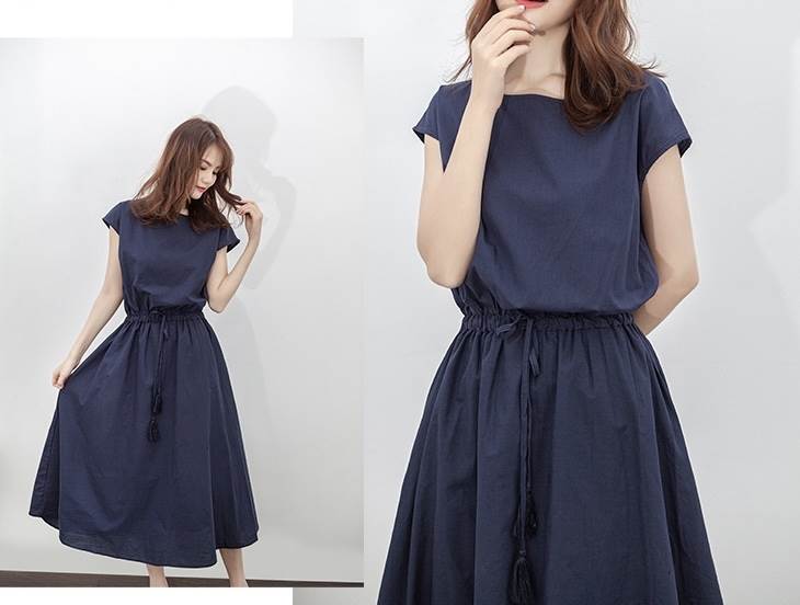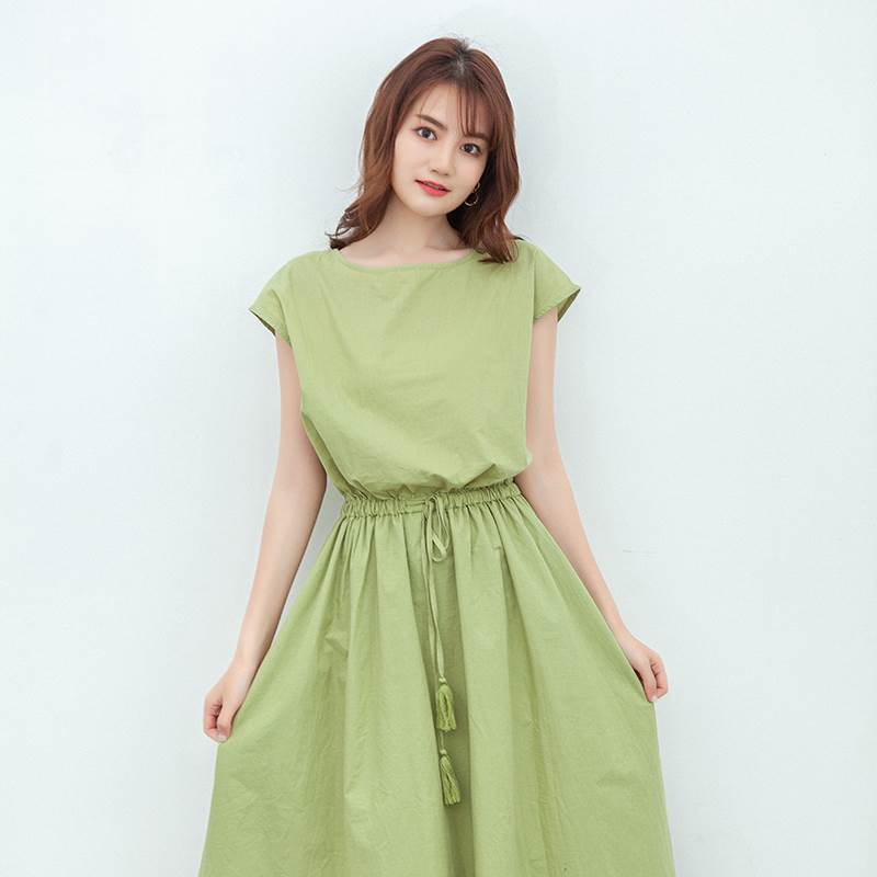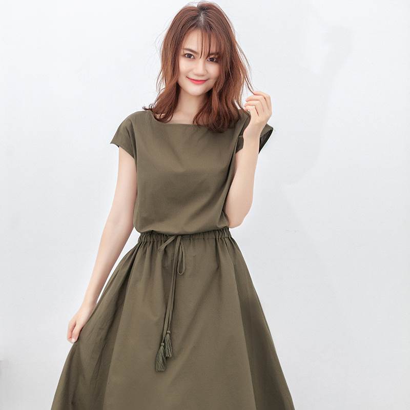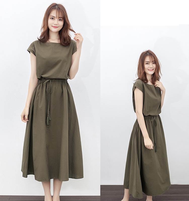 ワンピース ミモレ丈 袖あり 半袖 襟なし スリム 細身 リボン ウエストマーク ハイウエスト プルオーバー 綿 リネン 薄手 コットン 大人可愛い きれいめ シンプル カジュアル 大人 上品 お洒落 レトロ 大人女子 こなれ感 存在感 とろみ感 抜け感 無地 夏 10代 20代 30代 レディース デート お出かけ 女子会 お泊まり 休日 旅行 ショッピング 普段使い 韓国 オルチャン ファッション コーデ トレンド 流行 M L XL 2XL ブラック ブルー グリーン カーキ オレンジ アプリコット