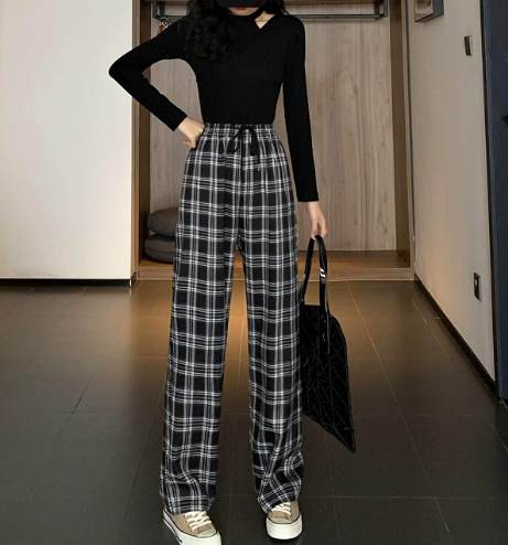 ボトムス パンツ カジュアルパンツ ストレートパンツ ポケット ウエストゴム ウエストリボン かわいい 大人可愛い きれいめ シンプル カジュアル 大人 上品 おしゃれ かっこいい 大人女子 こなれ感 ラフ メンズライク ボーイッシュ 個性的 主役級 存在感 チェック柄 秋 冬 10代 20代 30代 レディース 女性用 OL ママ 学生 デート お出かけ 女子会 お泊まり 休日 リゾート 旅行 ショッピング 着回し 普段使い S M L XL 2XL 脚長 美脚 ファッション コーデ スタイル