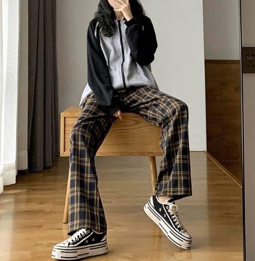 チェック柄がおしゃれなアクセントとなり、コーディネートにメリハリを与えます。