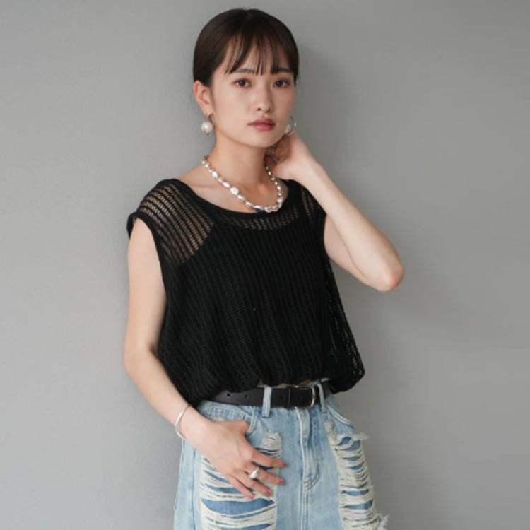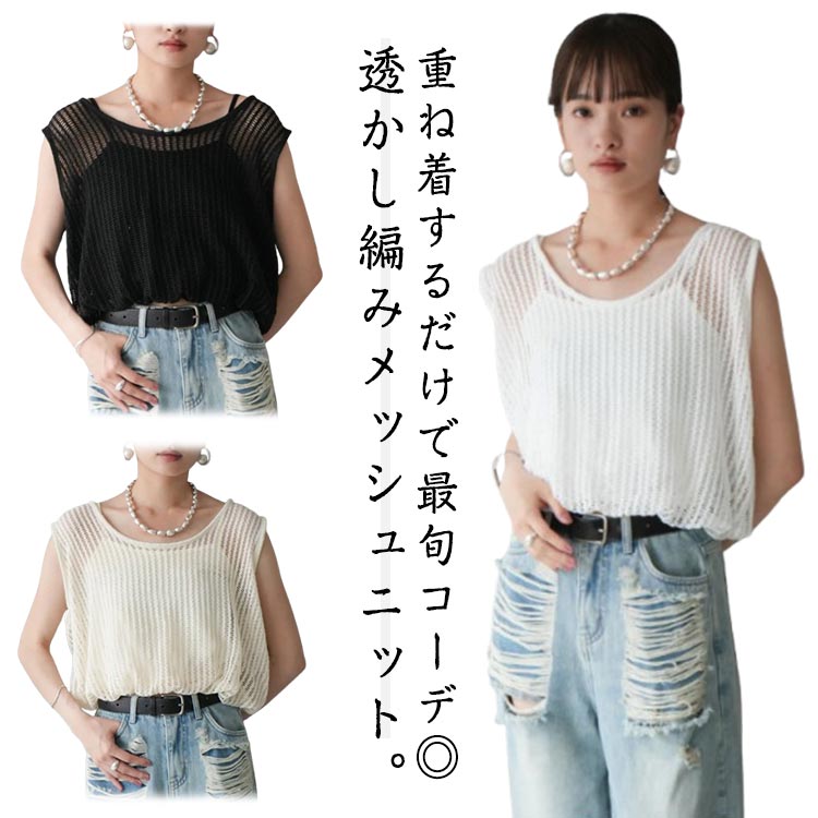 ニット 偽二枚 レディース メッシュニ レディースファッション 豊富な品揃え ホワイト ブラック ベージュ