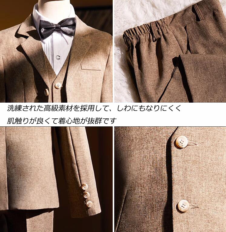 生地もしっかりしてとってもオシャレでどんな季節にもピッタリの男の子フォーマルスーツ。ポリエステル素材でシワに強く、耐久性に優れ、長期の保管や使用にも安心できます。きちんと感がたっぷり、スタイリッシュなコーディネートの完成度を高めます。