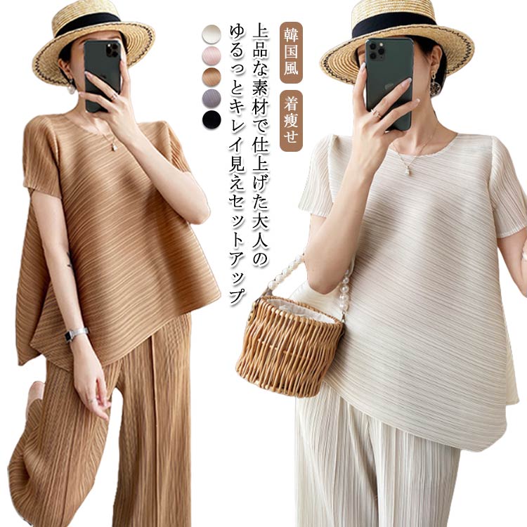 tシャツ セットアップ ブラウス カジ トップス シャツ ブラウス 42%Off ブラウン/上下セット アイボリー/上下セット ピンク/上下セット グレー/上下セット ブラック/上下セット