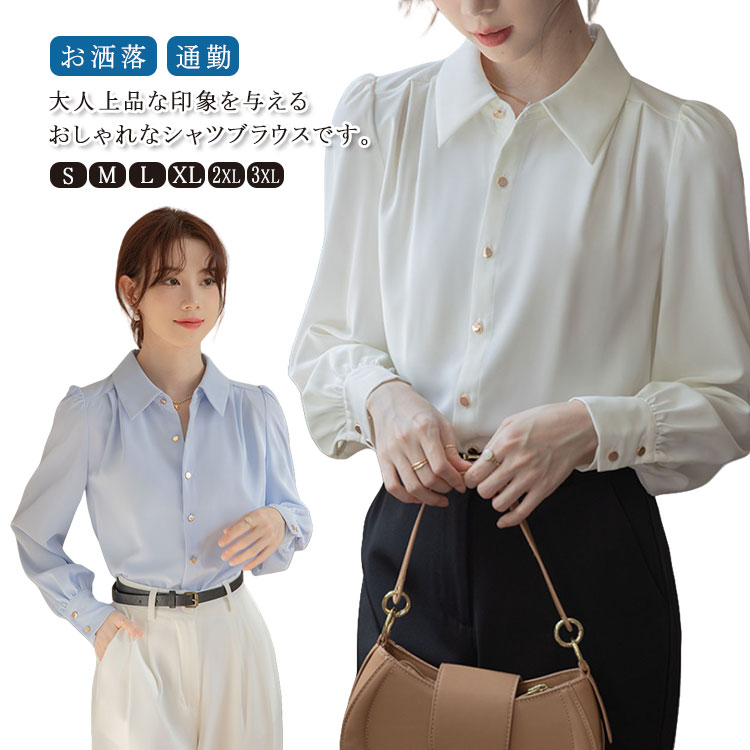 ブラウス 制服 ビジネス OL シアー トップス シャツ ブラウス 続々登場 ホワイト ブルー S M L XL 2XL 3XL