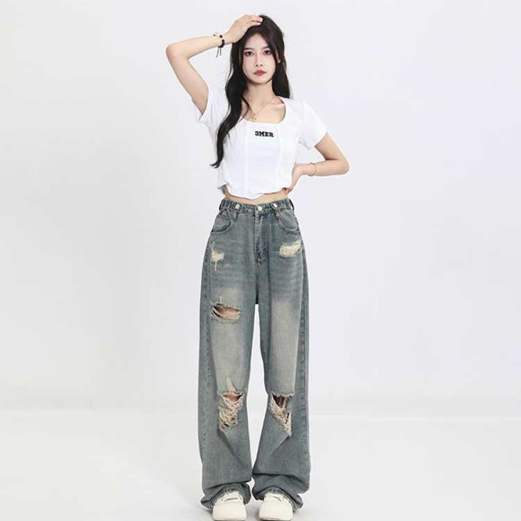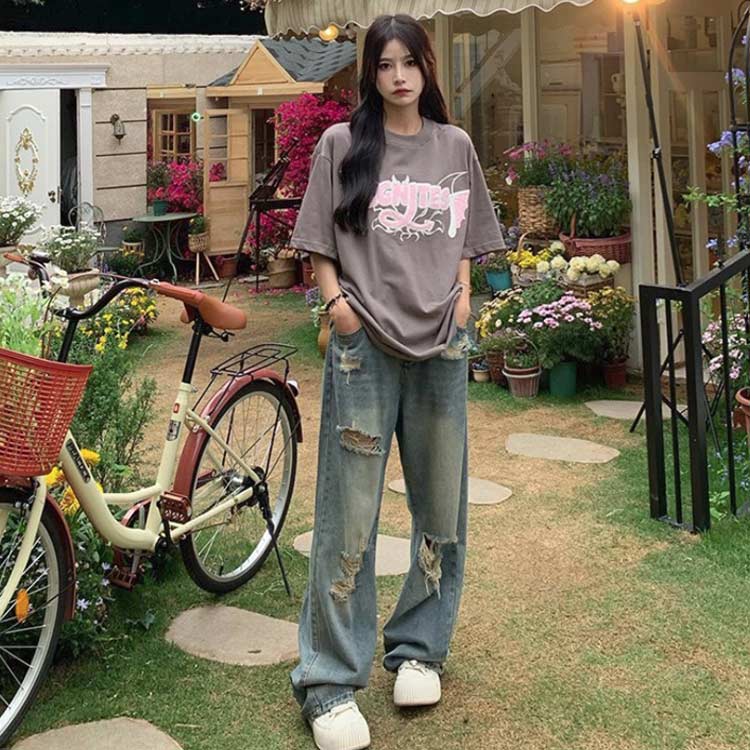 デニムパンツ ビジュー付き
