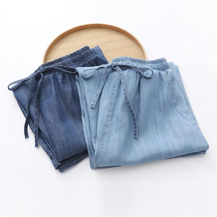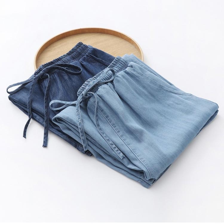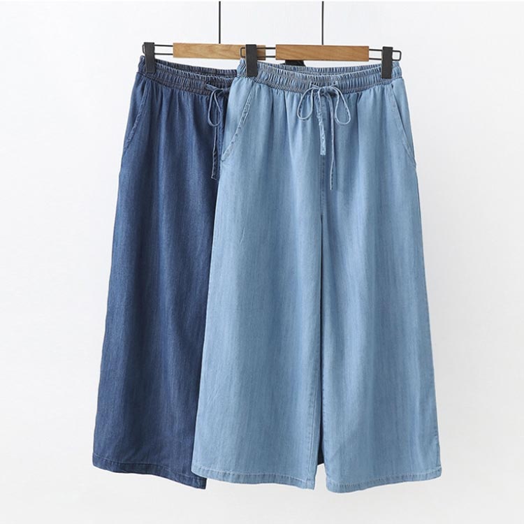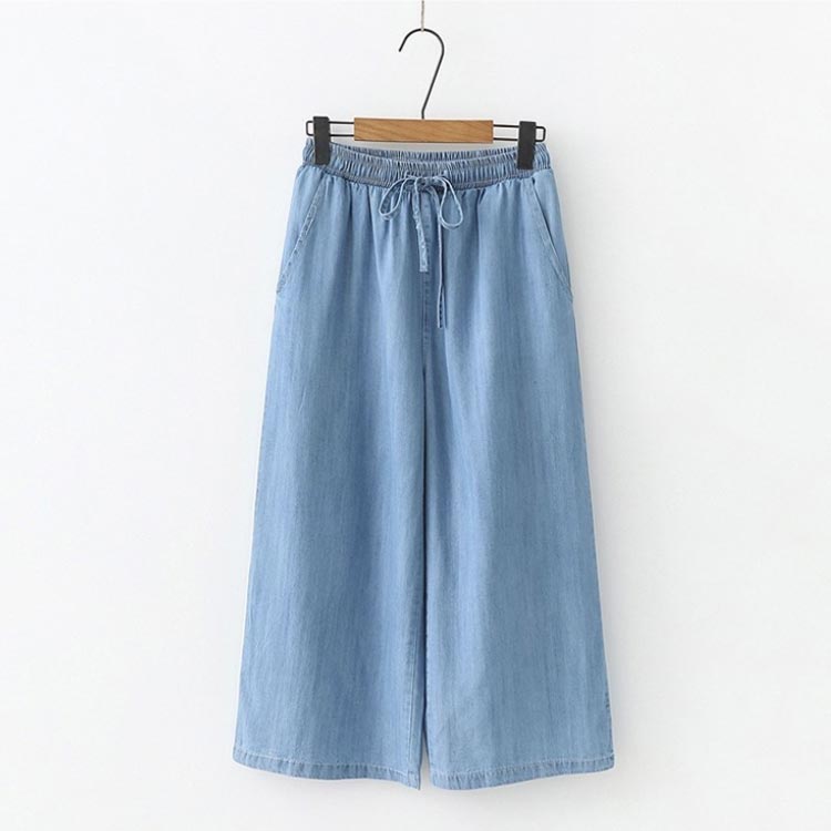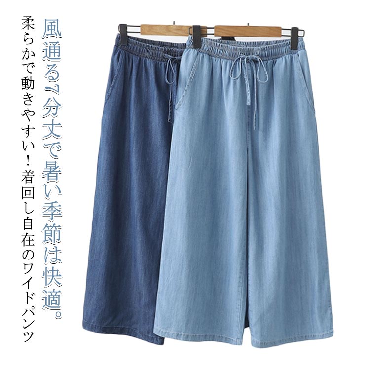 デニム風 ワイドパンツ レディース 薄 レディースファッション 続々登場 ダークブルー ライトブルー M L XL 2XL 3XL