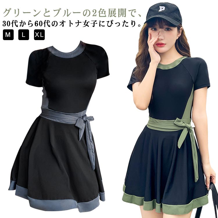 体型カバー水着 スイムウェア 体型カバ 水着 お買い得 グリーン ブルー M L XL