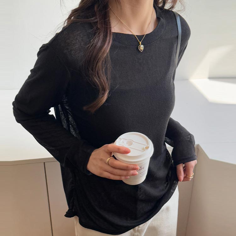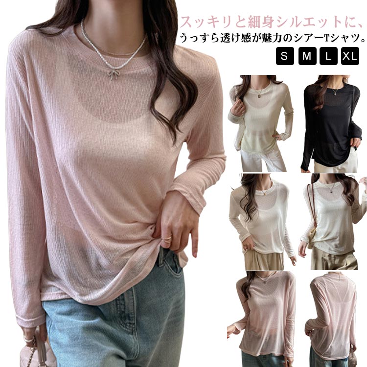 重ね着 トップス 透け感 シアー クル トップス Tシャツ カットソー 特集 ブラック ホワイト ベージュ グリーン ピンク S M L XL