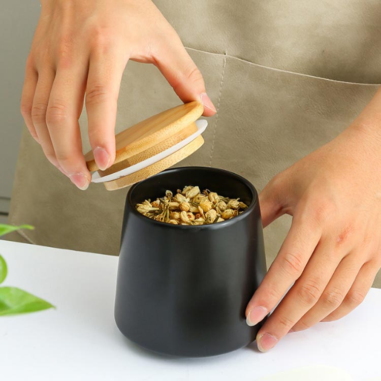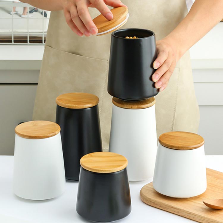 コーヒー豆 セット 木蓋付き 調味料入れ 北欧 セラミック 保存容器 瓶 砂糖 丸 容器 ストッカー 大容量 茶葉 密閉 お塩 おしゃれ フタ付き パッキン付き 陶器 木目