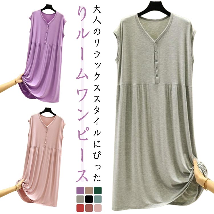 ルームウェア ノースリーブ ルームワン ブラック ライトグレー ライトブルー ライトパープル ベージュ ダークグリーン ダークピンク レッド ライトピンク
