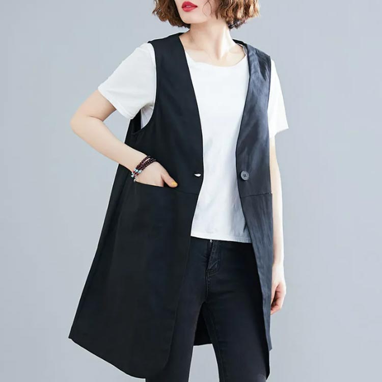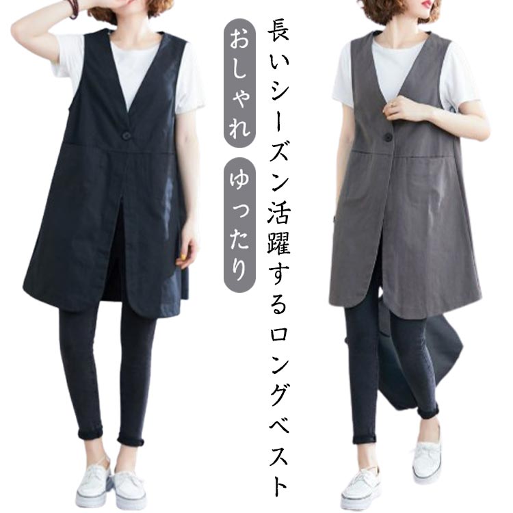 おしゃれ 春秋 トップス ロング丈 レ トップス ベスト お得なセール ブラック グレー L XL 2XL 3XL
