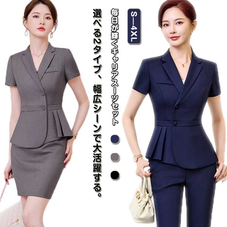 スカートスーツ レディース 大きいサイ レディースファッション 豊富な品揃え パンツ上下セット/ブルー パンツ上下セット/グレー パンツ上下セット/ブラック スカート上下セット/ブルー スカート上下セット/グレー スカート上下セット/ブラック S M L XL 2XL 3XL 4XL