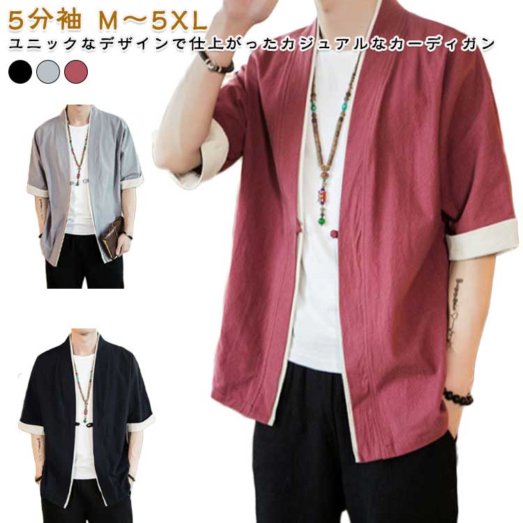ゆったり 一つボタン 甚平風 大きいサ メンズファッション お買い得 グレー ブラック ワインレッド M L XL 2XL 3XL 4XL 5XL