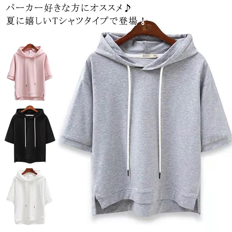 Tシャツ カットソー フード付きtシャ レディースファッション 特集 グレー ブラック ホワイト ピンク M L XL 2XL 3XL