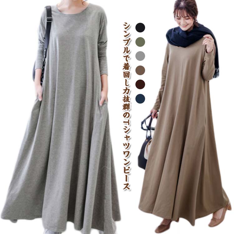 ワンピース tシャツワンピース レディ レディースファッション 割引 ブラック ネイビー コーヒー ベージュ グレー アーミーグリーン M L XL