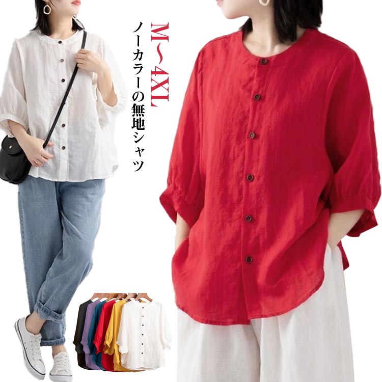 シャツ レディース 7分袖 羽織り 涼 レディースファッション 続々登場 レッド ブルー イエロー ホワイト パープル ブラック M L XL 2XL 3XL 4XL