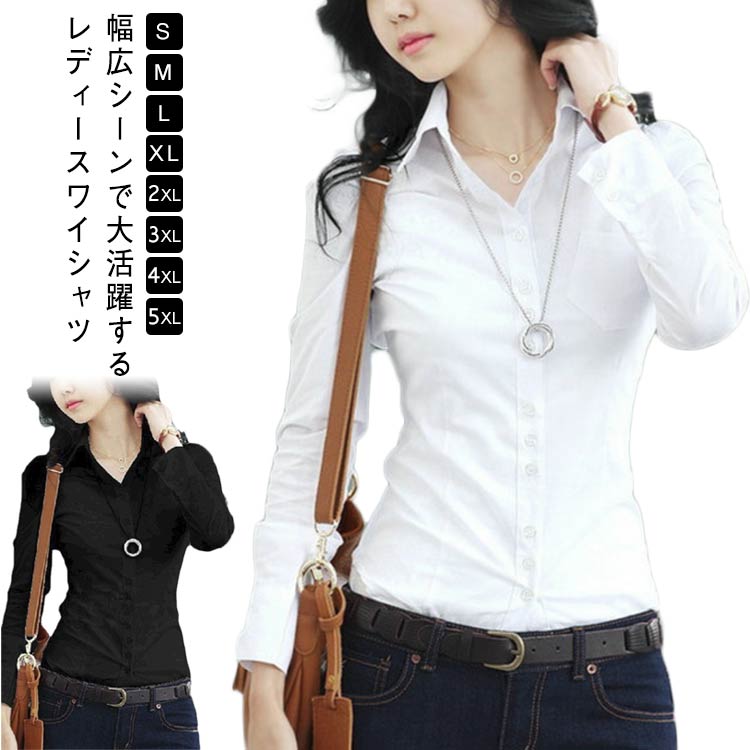 スリム Yシャツ 長袖 ワイシャツ レ トップス シャツ ブラウス 続々登場 ホワイト ブラック S M L XL 2XL 3XL 4XL 5XL