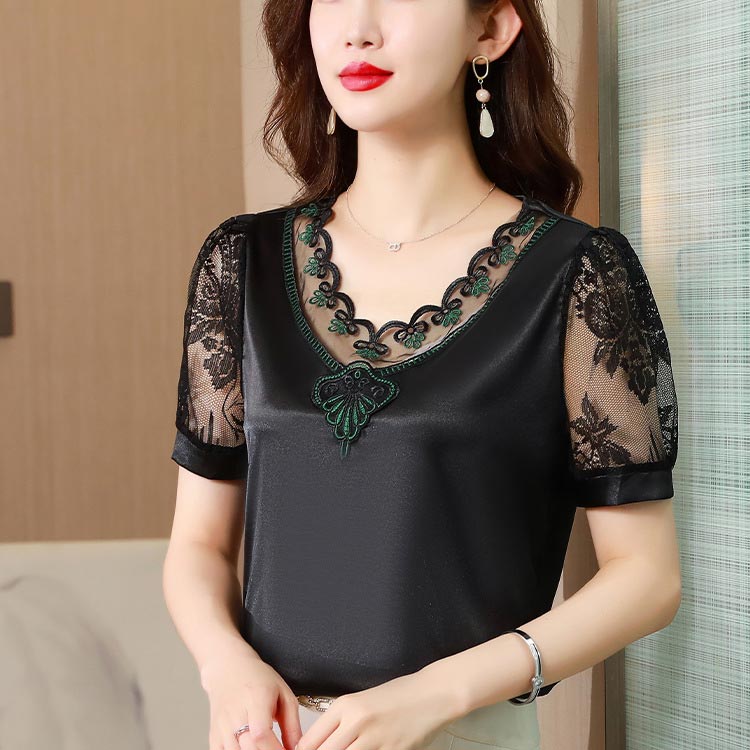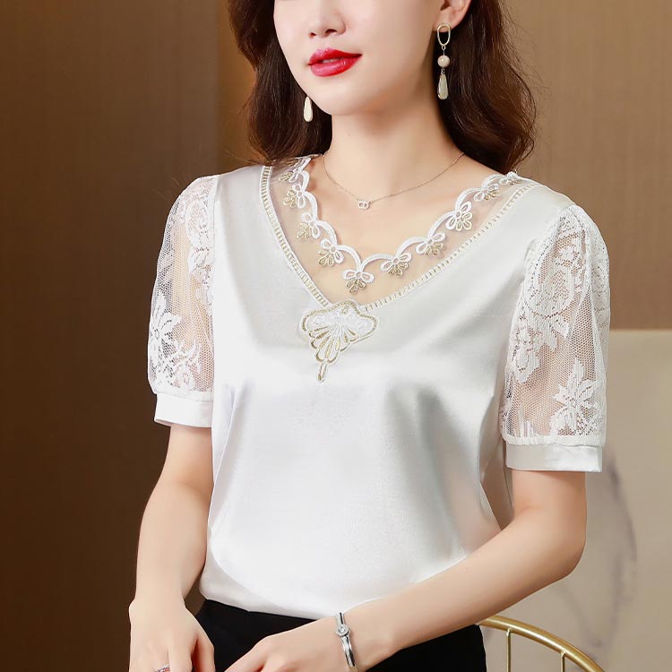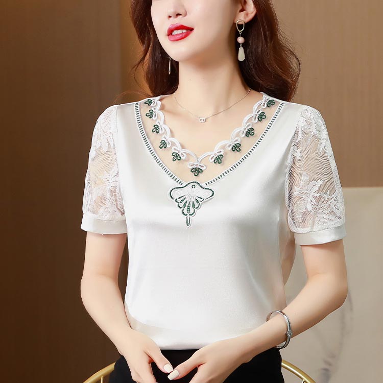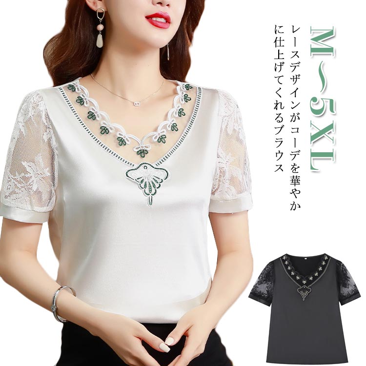 ホワイト 半袖 トップス レース vネ レディースファッション 42%Off 白金 白緑 黒金 黒緑 M L XL 2XL 3XL 4XL 5XL