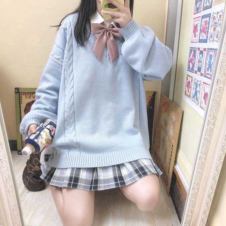 スクールセーター 制服 冬 長袖 高校 トップス ニット セーター セーター お得なセール ダークグレー ホワイト ダークブルー ライトブルー