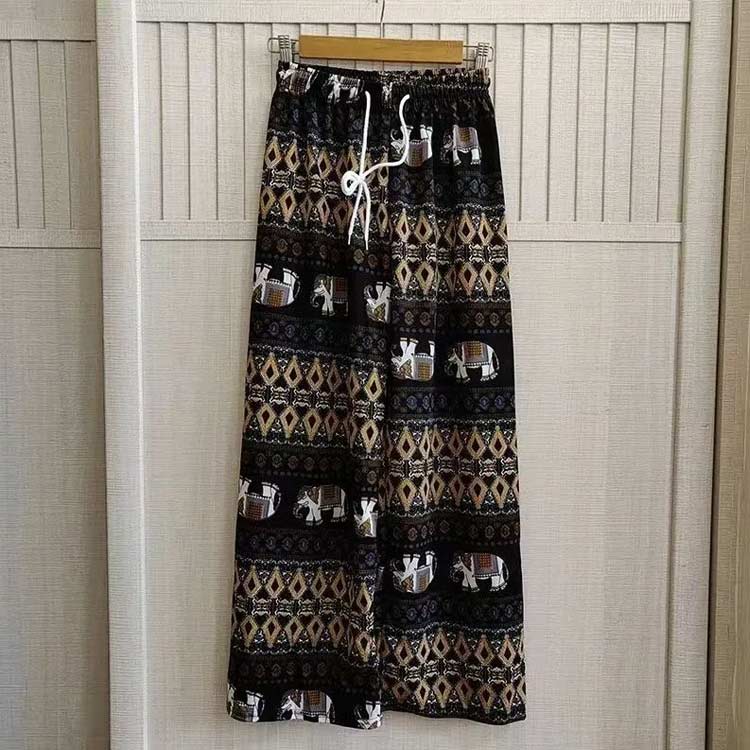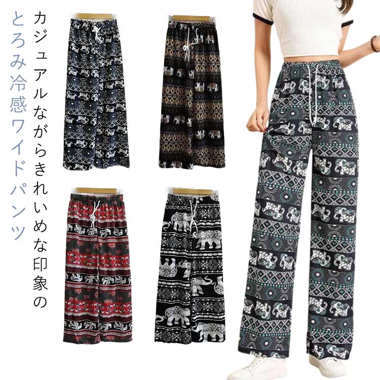 柄 パンツ 総柄 冷感 部屋着 ワイド レディースファッション 続々登場 A01 A02 A03 A04 A05 A06 A07 S(42.5-50KG) L(50-72.5KG)