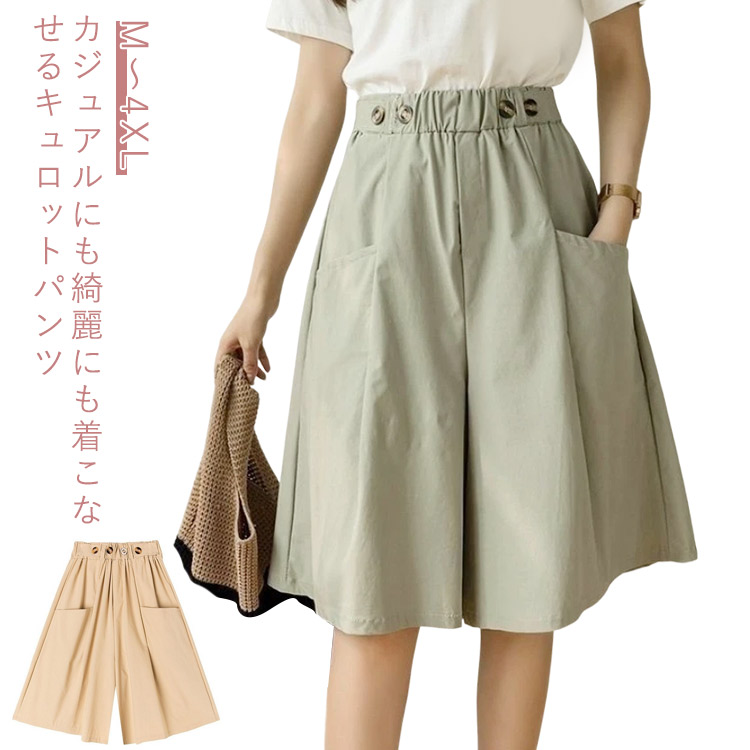 スカーチョ 春夏 カジュアル キュロッ ボトムス パンツ 44%Off ブラック ブルー ベージュ グリーン M L XL 2XL 3XL 4XL