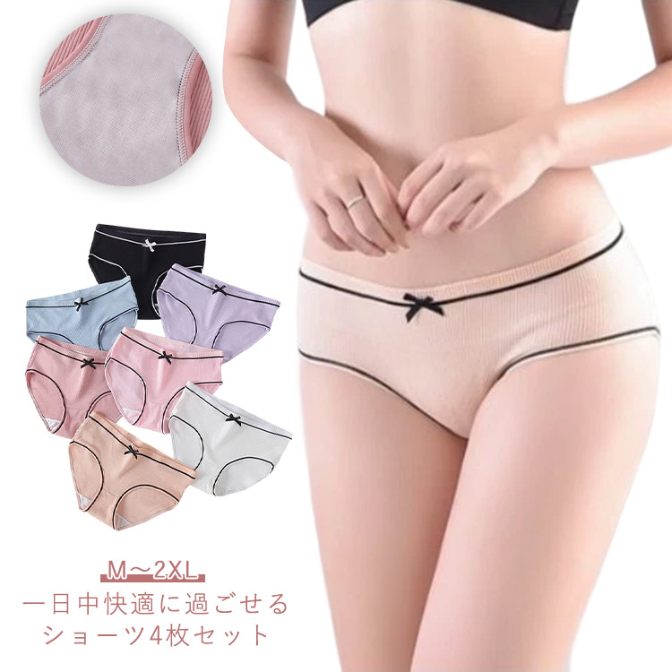 インナー レディース コットン 綿 肌 レディース インナー 下着 ショーツ スタンダード 通販 白4枚 紫4枚 灰4枚 黒4枚 ピンク4枚 ブルー4枚 小豆色4枚 肌色4枚 M L XL 2XL