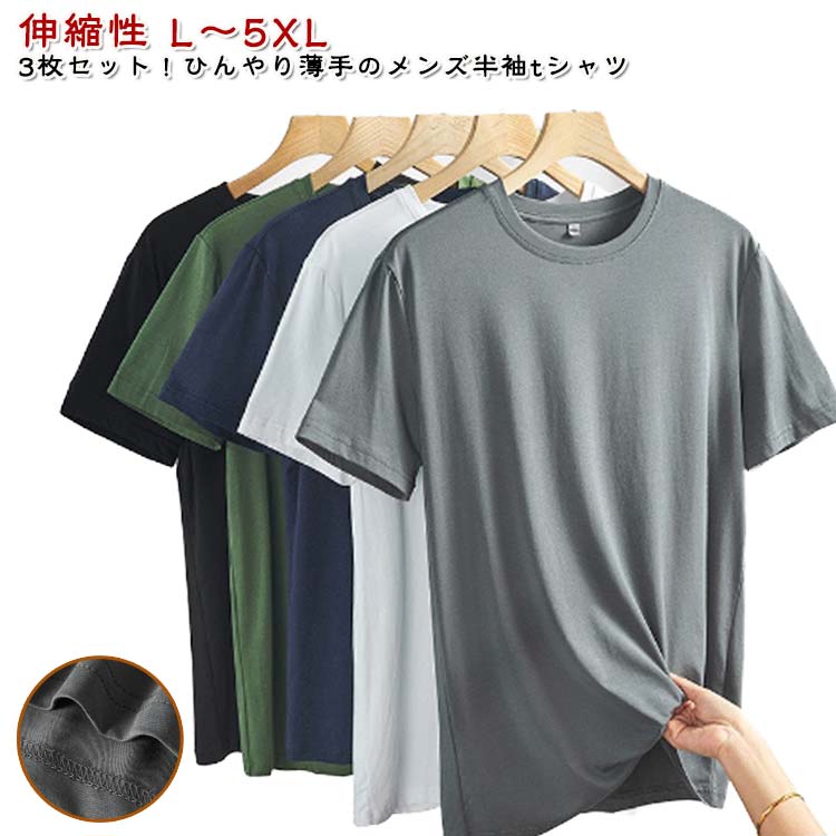 接触冷感 蒸れない 速乾 薄手 吸汗性 トップス Tシャツ カットソー 人気 ダークグレー/3枚 ブラック/3枚 ホワイト/3枚 ダークグリーン/3枚 ライトブルー/3枚 ダークブルー/3枚 ワインレッド/3枚 L XL 2XL 3XL 4XL 5XL