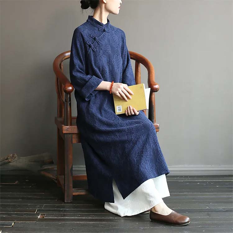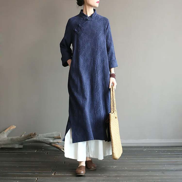 レディース 春秋 マキシ丈 長袖 ロン ワンピース 続々登場 ネイビー レッド パープル M L XL 2XL