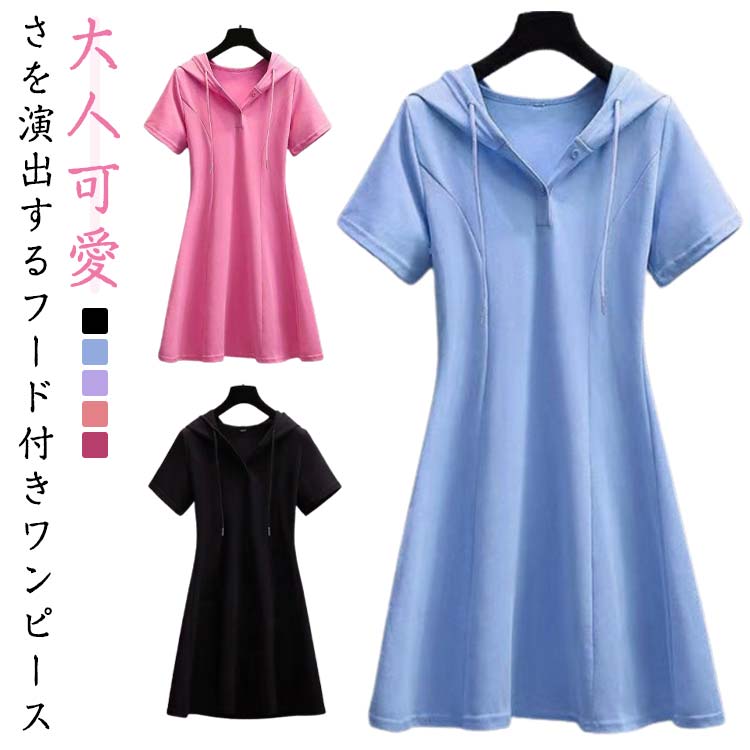 トップス パーカーワンピース 可愛い ワンピース 割引 ブラック ピンク ブルー パープル 桃ピンク S M L XL 2XL 3XL