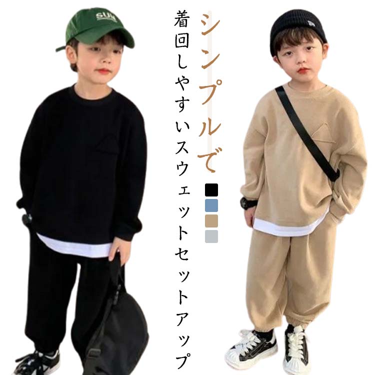 キッズ 長袖 スウェットパンツ カジュ キッズ ベビー マタニティ お得なセール ブルー上下セット ベージュ上下セット グレー上下セット ブラック上下セット 90 100 110 120 130 140 150