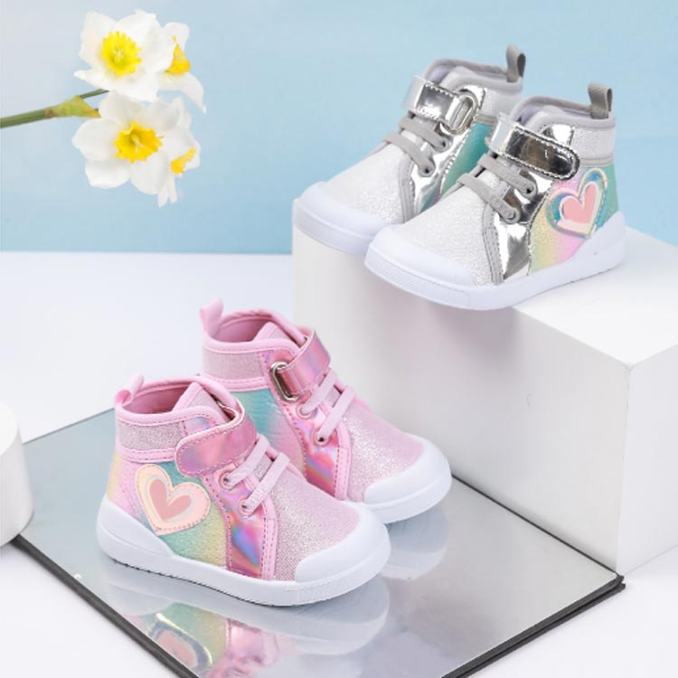 スニーカー ハイカット カジュアル キ キッズ 靴 スニーカー 豊富 ピンク シルバー 21 22 23 24 25 26