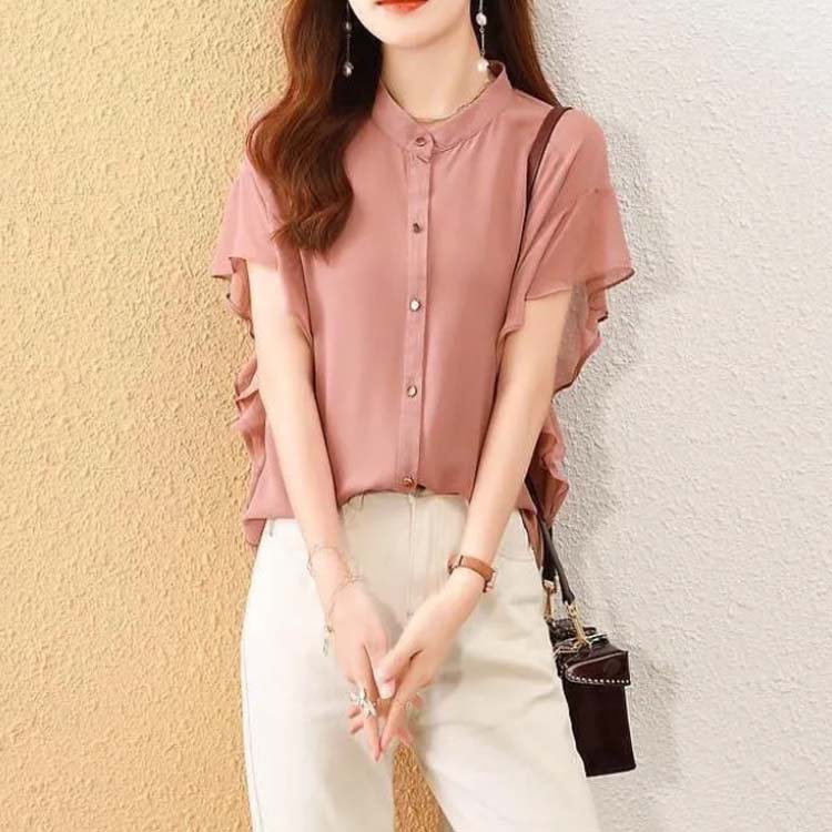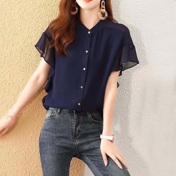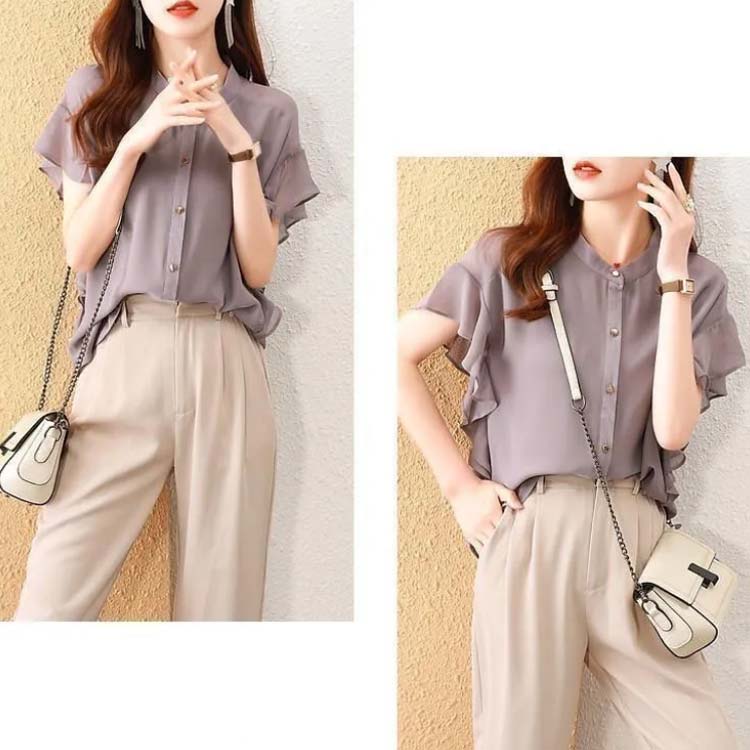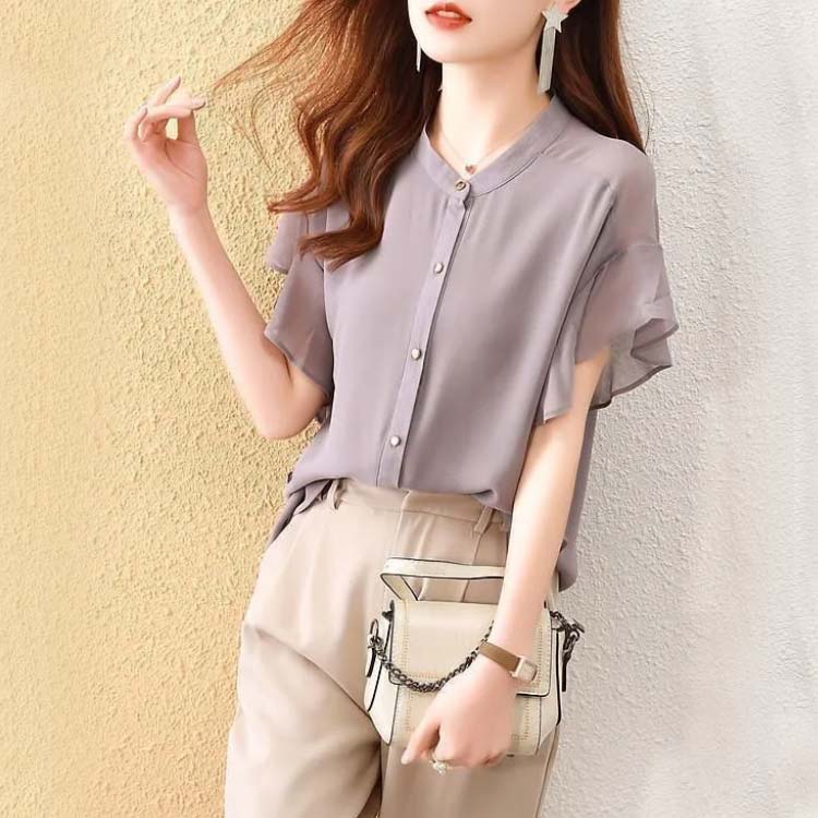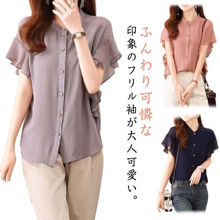 フレアスリーブ レディース ブラウス トップス シャツ ブラウス 続々登場 ライトパープル ピンク ネイビー S(40-47.5KG) M(47.5-52.5KG) L(52.5-57.5KG) XL(57.5-62.5KG) 2XL(62.5-67.5KG) 3XL(67.5-72.5KG)