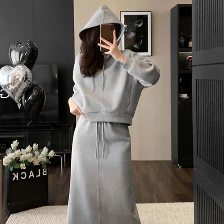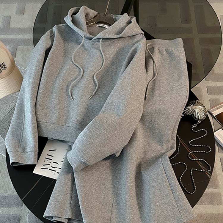 パーカー きれいめ フード付き 春秋 トップス パーカー 新作 グレー上下セット ブラック上下セット S M L XL 2XL