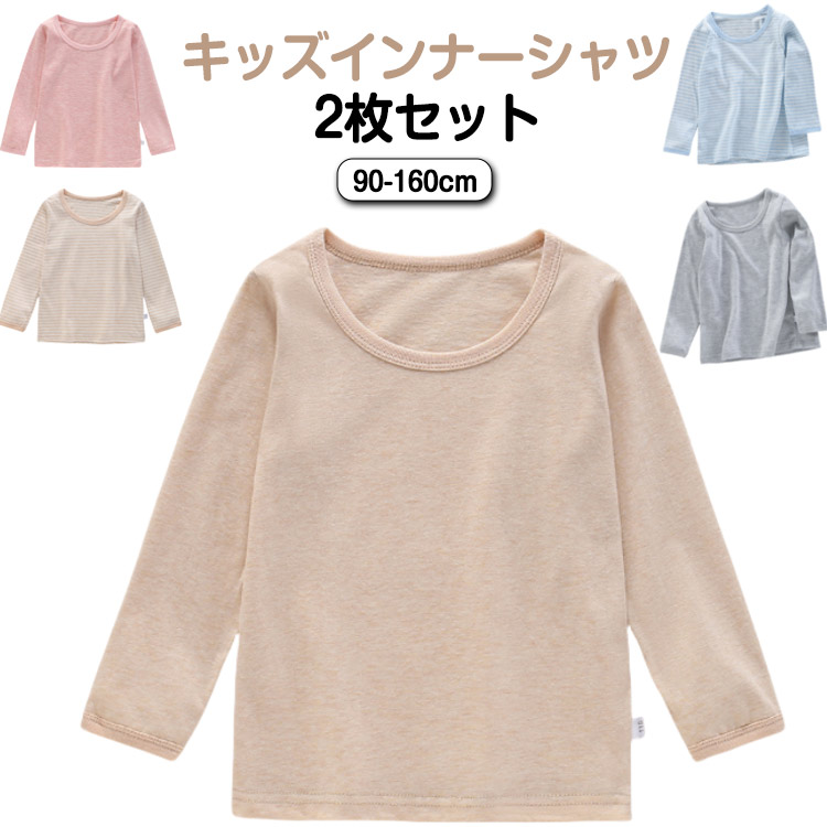 インナーシャツ 2枚セット 子供 子供 キッズ トップス Tシャツ カットソー 割引 ブルー+ブルー グレー+グレー ピンク+ピンク コーヒー+コーヒー ブルー+グレー ピンク+コーヒー コーヒー+ブルー 90 100 110 120 130 140 150 160