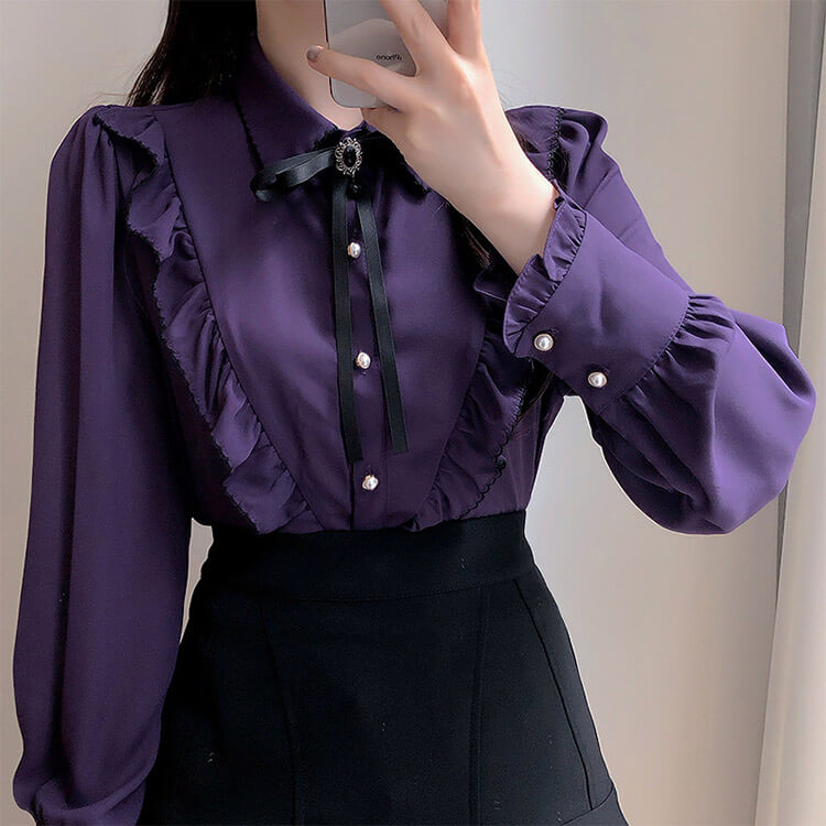 可愛い ブラウス おしゃれ 無地 かわ トップス シャツ ブラウス 続々登場 ダークパープル グリーン ホワイト S M L XL