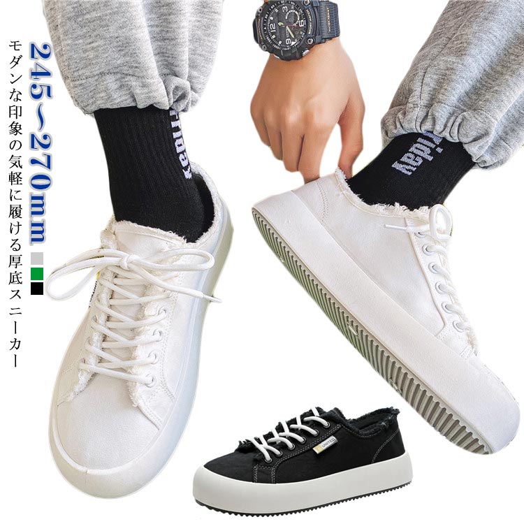 履きやすい スポーツシューズ おしゃれ メンズ靴 スニーカー お得なセール ホワイト グリーン ブラック 39(内寸245mm) 40(内寸250mm) 41(内寸255mm) 42(内寸260mm) 43(内寸265mm) 44(内寸270mm)
