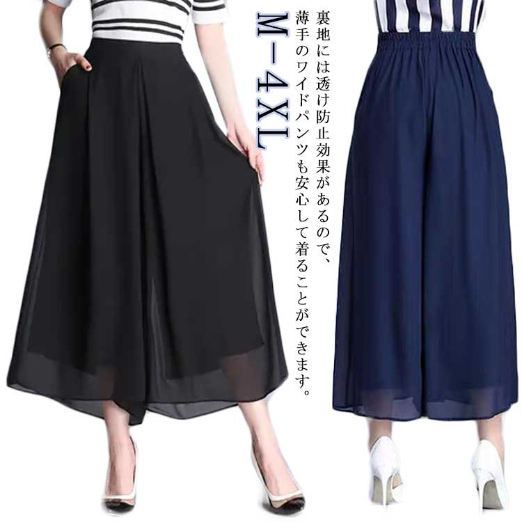 シフォンパンツ シフォン 9分丈 裏地 ボトムス パンツ 44%Off ブラック/9分丈 ネイビー/9分丈 ブラック/7分丈 ネイビー/7分丈 M L XL 2XL 3XL 4XL