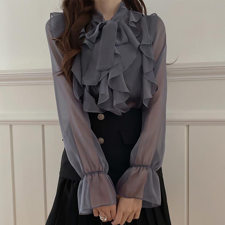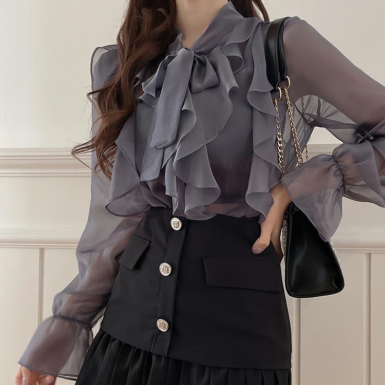 インナー ブラウス 透け感 フォーマル トップス シャツ ブラウス 割引 ホワイト グレー S M L XL