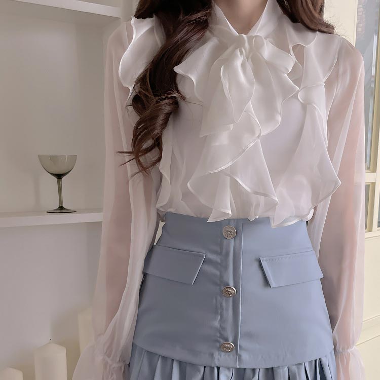 シフォンブラウス シアーブラウス ボリューム袖
