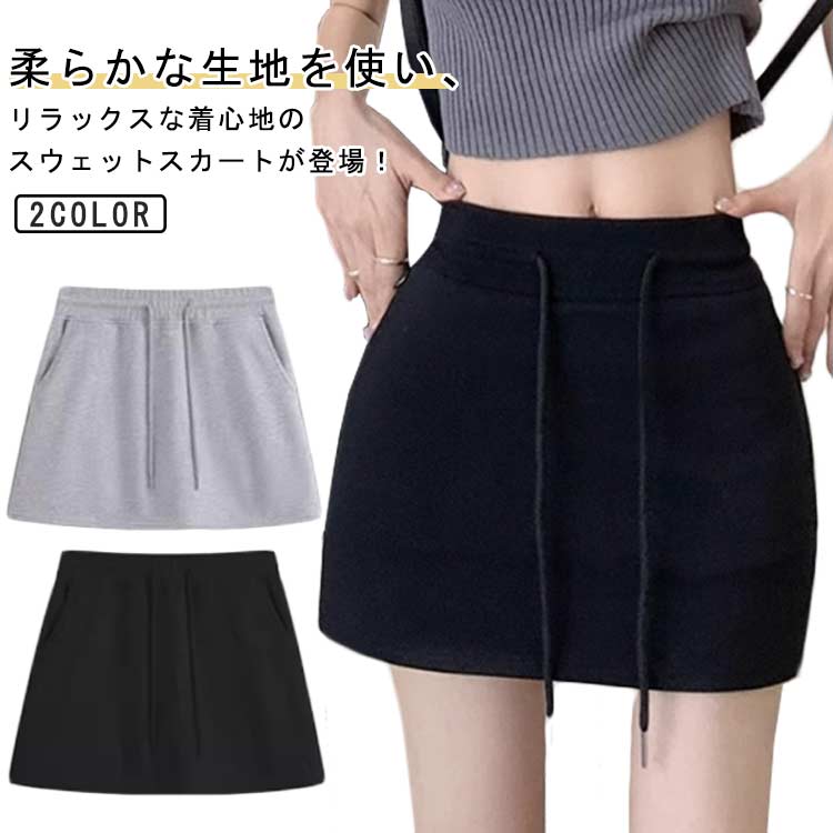 部屋着 レディース ウエストゴム ミニ ボトムス スカート 通販 ブラック グレー F L XL XXL