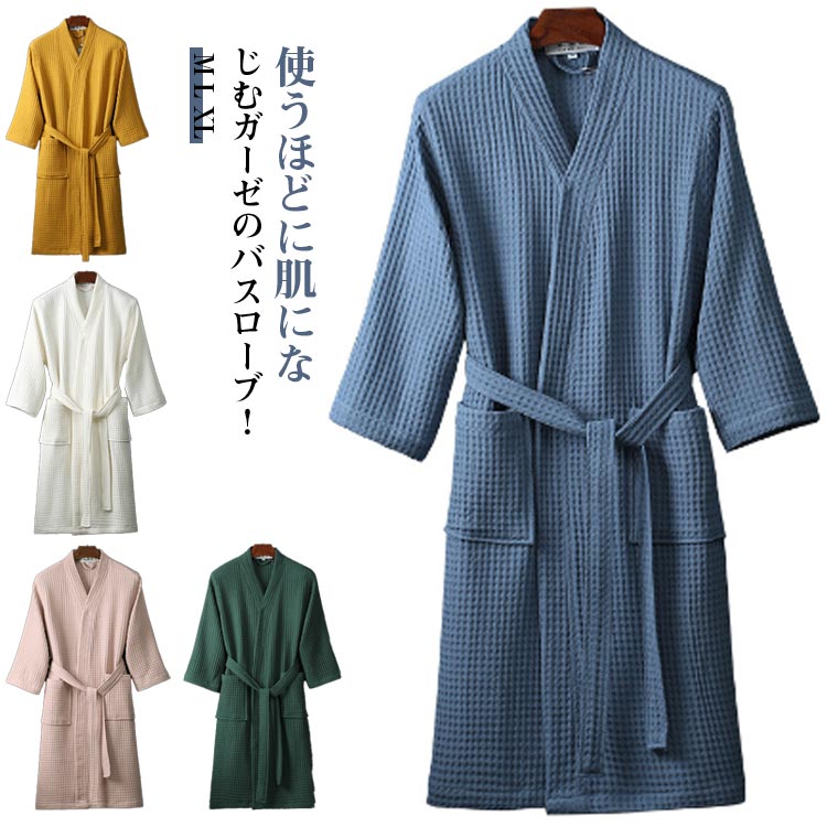 ガーゼ 敏感肌 バスローブ 速乾 柔ら インナー 下着 ナイトウエア 割引 イエロー アイボリー ダークグリーン ピンク ブルー M L XL
