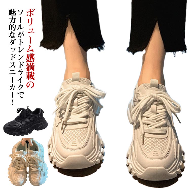 ダッドスニーカー ウォーキングシューズ レディース靴 スニーカー 人気 ブラック アイボリー 35(内寸225mm) 36(内寸230mm) 37(内寸235mm) 38(内寸240mm) 39(内寸245mm) 40(内寸250mm)