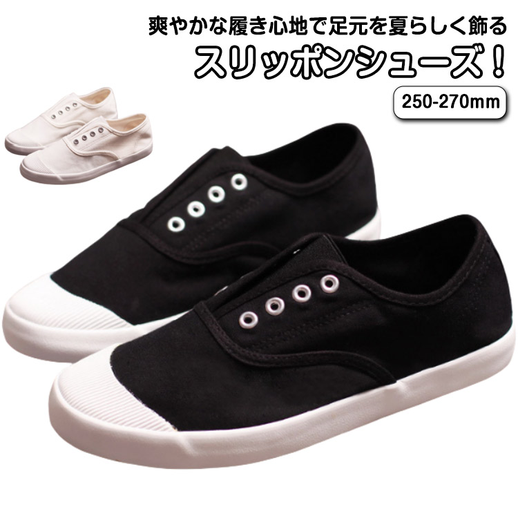 スニーカー キャンパスシューズ スリッ 靴 続々入荷中 黒 白 40(内寸250mm) 41(内寸255mm) 42(内寸260mm) 44(内寸270mm)