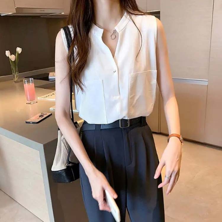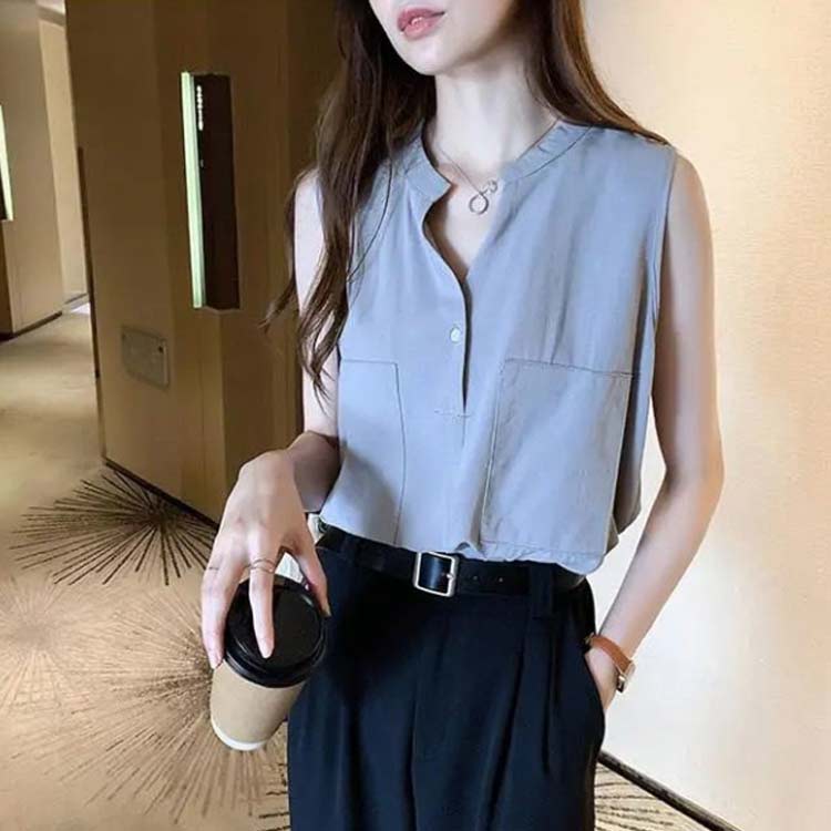 袖なしブラウス きれいめ ノースリーブ トップス シャツ ブラウス 割引 ホワイト ブラック グレー S M L XL